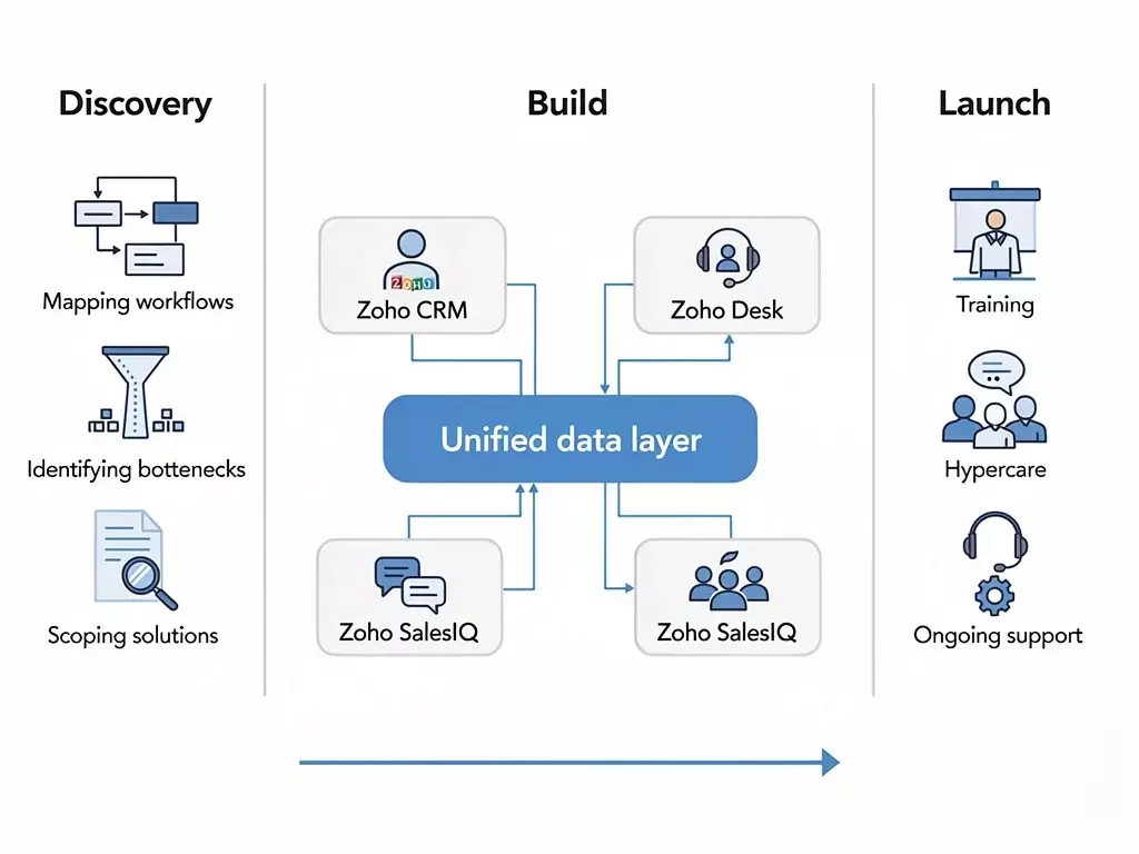 We ensure your Zoho solution runs smoothly from day one.
